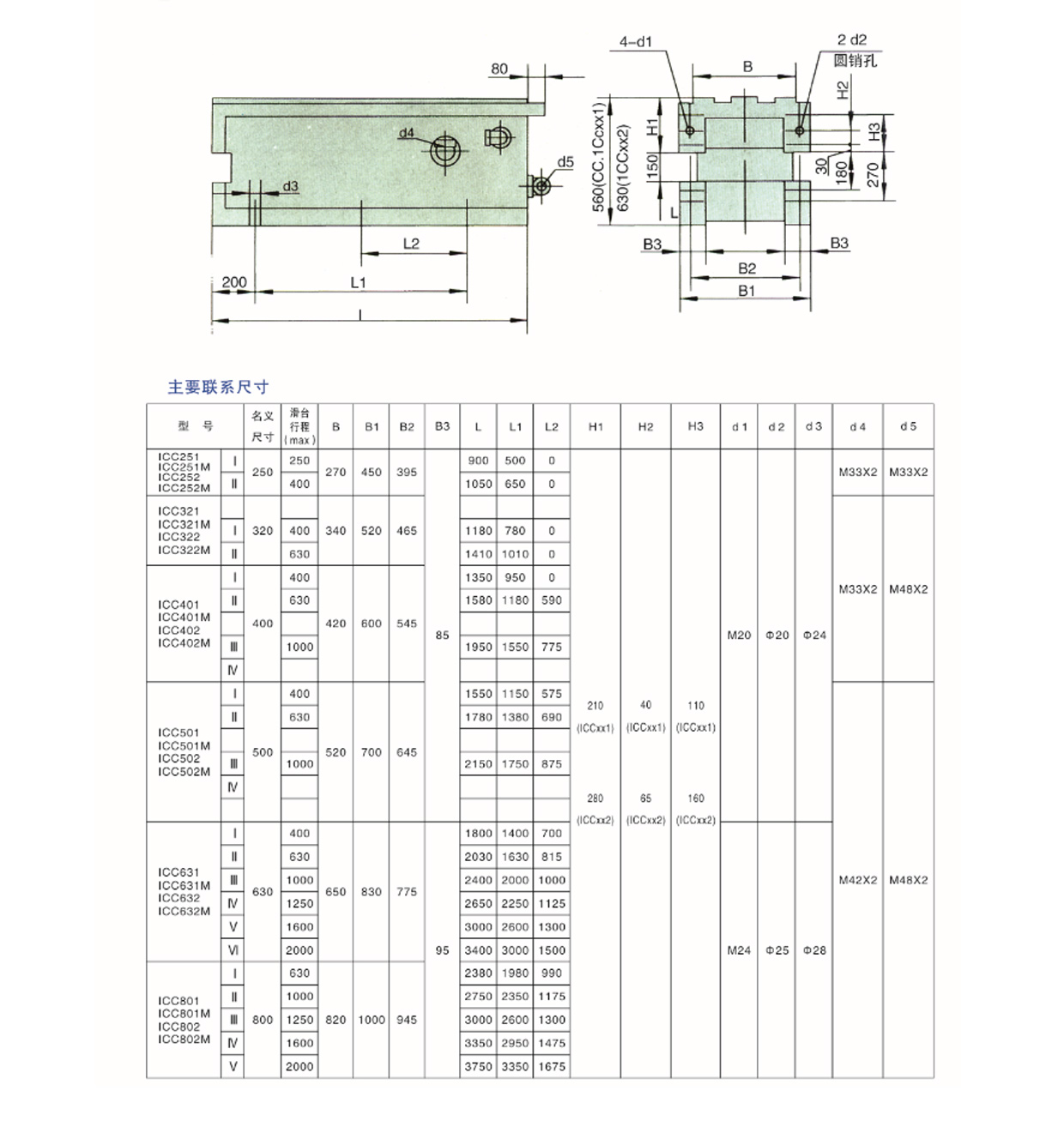 CC系列,ICC系列(liè)側底座用于安裝(zhuang)機械滑台或液壓(yā)滑台,并按滑台行(hang)程分型。ICC系列側底(dǐ)座分爲1CCxx1和1CCxx2普通級(ji)及ICCxx1M和ICCxx2M精密級,對位(wèi)于普通級🔴和精密(mi)級滑台。